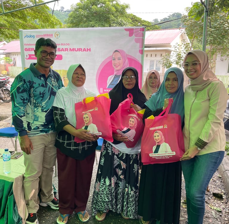 MMF - Menjelang datangnya bulan suci Ramadan, Senator Mirah Midadan Fahmid menginisiasi Gerakan Pangan Murah yang dilaksanakan di Kabupaten Bima dan Kota Bima bekerja sama dengan Perum BULOG.